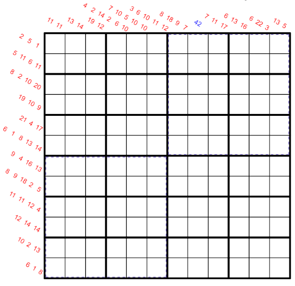 This was my first japanese sums puzzle with twin colours. Very nice indeed, especially the logic in boxes 15 & 16. Thanks Panthera