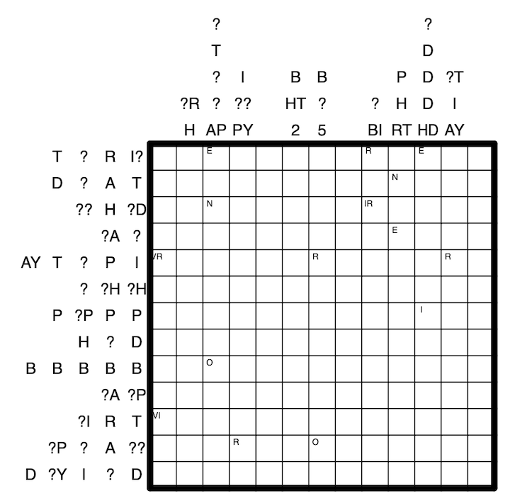 Solution code: Row 4, column 9, S for empty cells