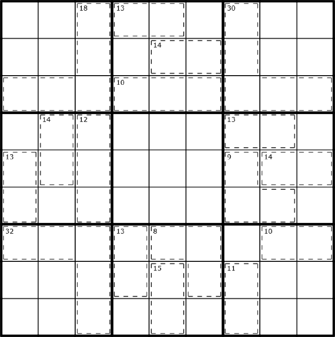 - Killer cages: Digits in a cage do not repeat and sum to the clue in the top left.