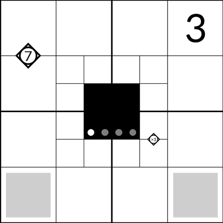 • Clues in diamonds refer to the sum of the two cells touching that diamond.