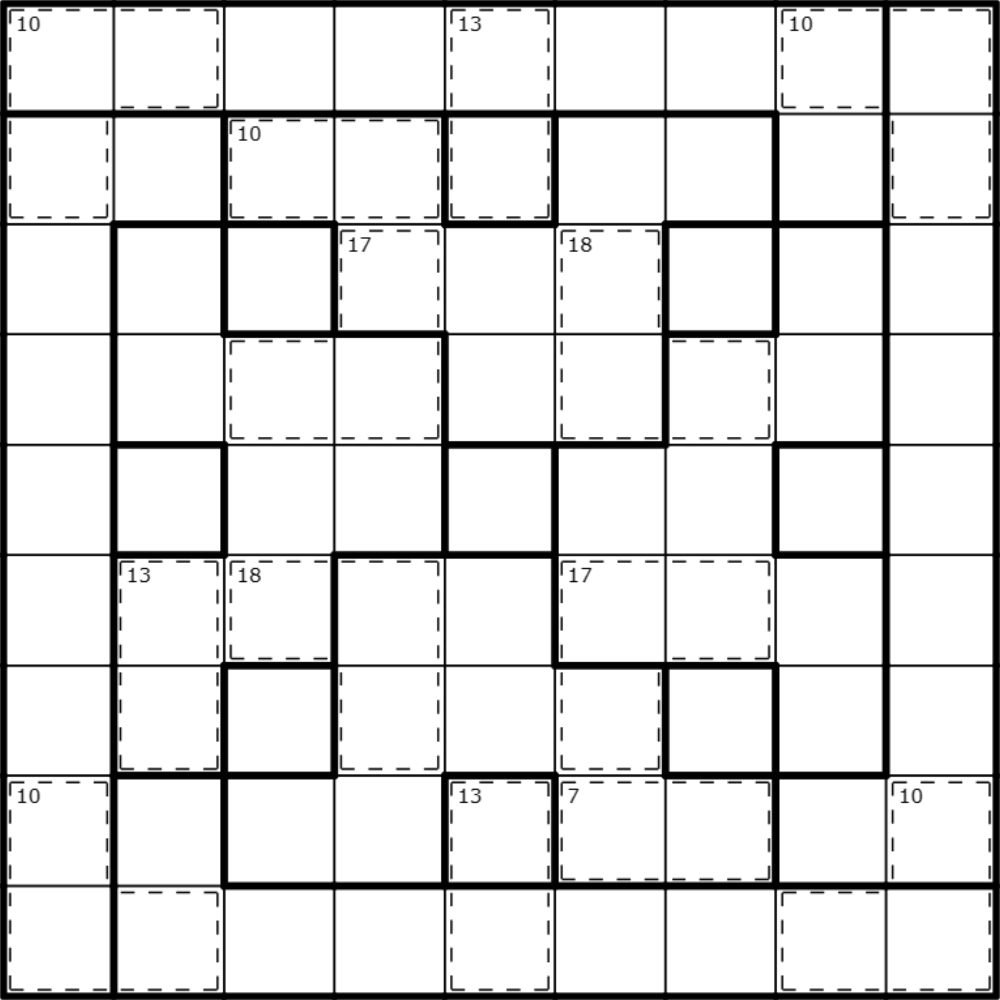 1. Place the digits 1-9 in each row, column, and region. One region in the grid is a scattered region and is made up of 9 isolated cells.
