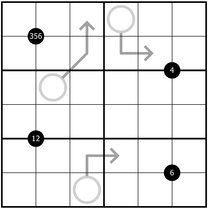 Arrows: Values along an arrow sum to the value in that arrow's circle.