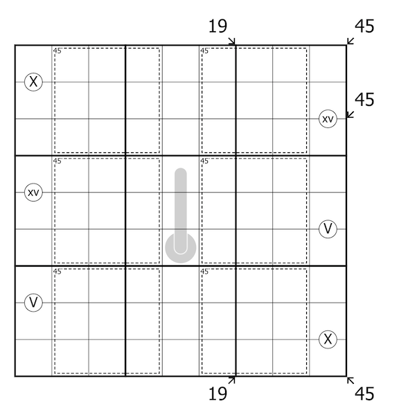 • Clues outside the grid give the sum of the clues along the indicated diagonal.