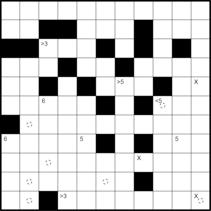 • A number in a cell indicates the length of the shiver occupying that cell.