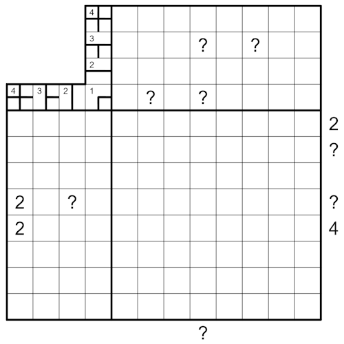 For clarity, unshaded cells can be empty, and ?s can be double digit numbers.