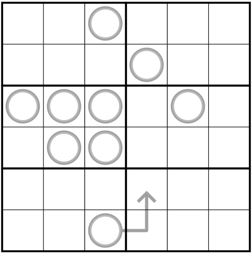 - Every circle is the bulb of an arrow but the path of some arrows must be determined by the solver