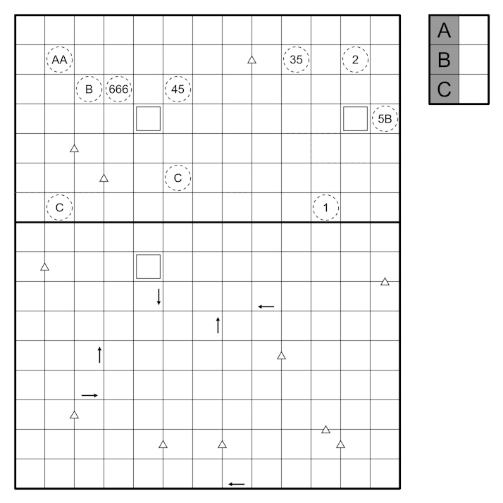 • Each portion of the grid has its own loop, clues, and regions, which do not cross the border. Digits, however, cannot repeat in any column spanning the whole grid.