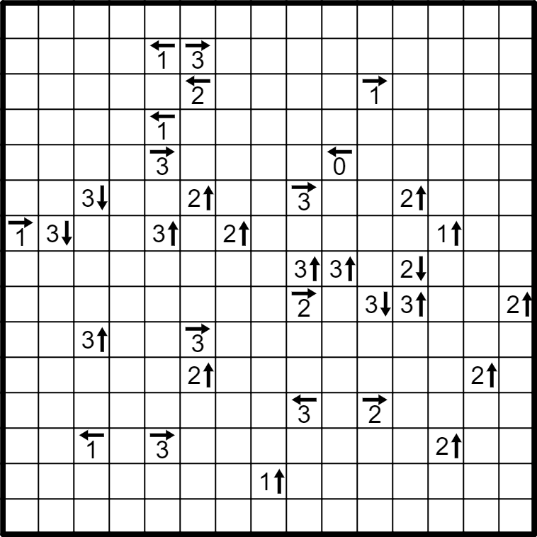Im Diagramm sind einige der Felder sind zu schwärzen, so daß Schwarzfelder einander nicht orthogonal berühren und die Hinweiszahlen in den ungeschwärzten Feldern angeben, wie viele Schwarzfelder sich in der entsprechenden Richtung befinden. Felder mit Hinweisen dürfen geschwärzt werden, die Hinweiszahlen in geschwärzten Feldern sind bedeutungslos.