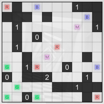 • A clue in an unshaded cell gives the color resulting from all lights illuminating that cell.