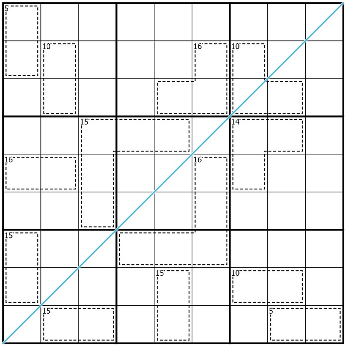 Digits in a cage do not repeat and sum to the small number in the top left corner of the cage.