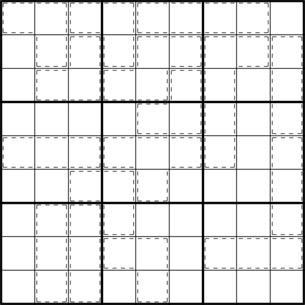 Sudoku: Fill every row, column and marked 3x3 box with the digits 1-9.