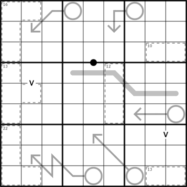 -Numbers in cages sum to the number in the top left corner of the cage.