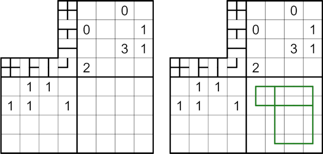 Tricky little puzzle. Lot of logic for such a small grid. Very nice.