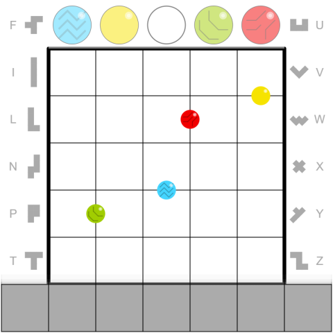 • 'Marbles' join cells that share a region, and no two marbles share a region.