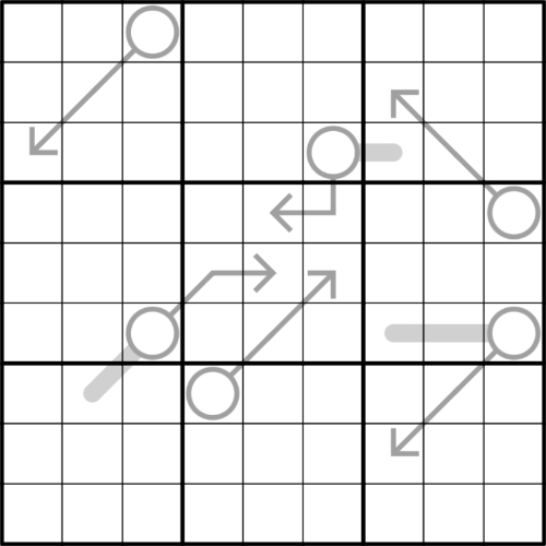 Cells separated by a knights move may not contain the same digits.