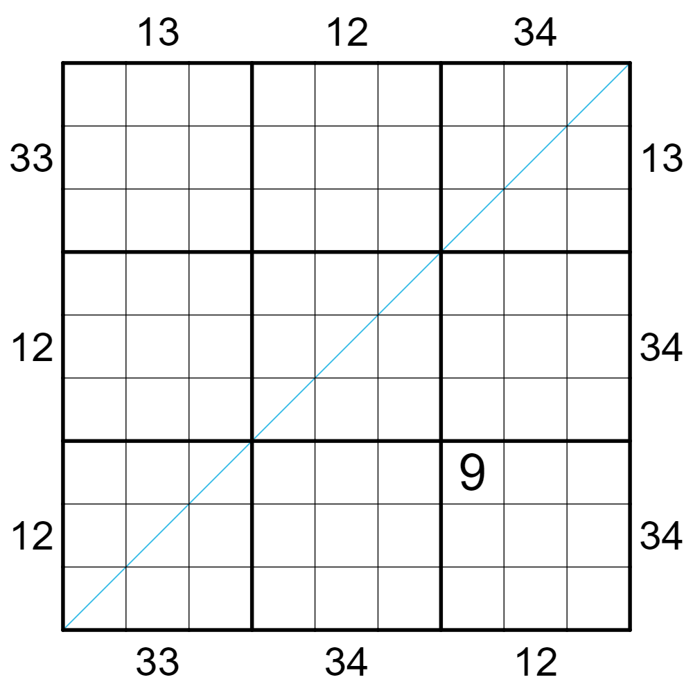 Diagonal: Digits cannot repeat along the indicated diagonal.