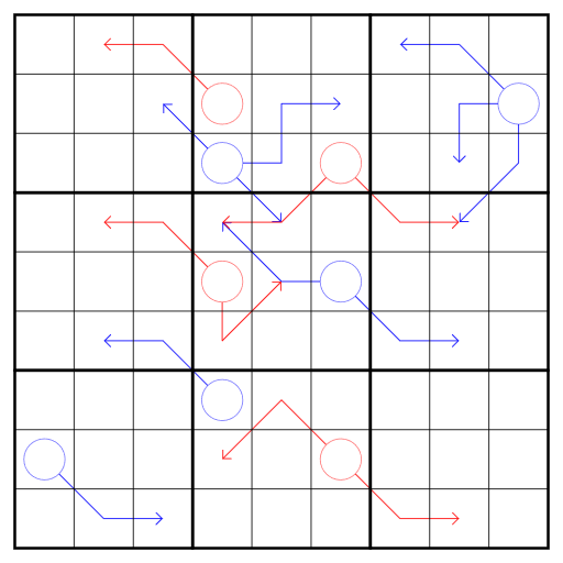 - Arrows: Digits along an arrow must sum to the digit in it's circle.