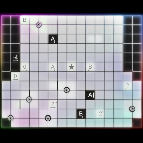 • Gears visited by the loop must alternate inside and outside (or vice versa). A gear is visited whenever the loop travels directly from a cell not touching that gear to a cell touching that gear.
