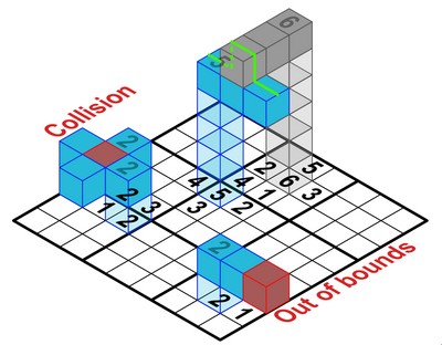 Does a beam need to have enough space to travel on it? For example, if we had a a beam of height n and n+2 on R1C1 and a beam of height n+1 on R1C2, is zigzagging up from n to n+2 valid?