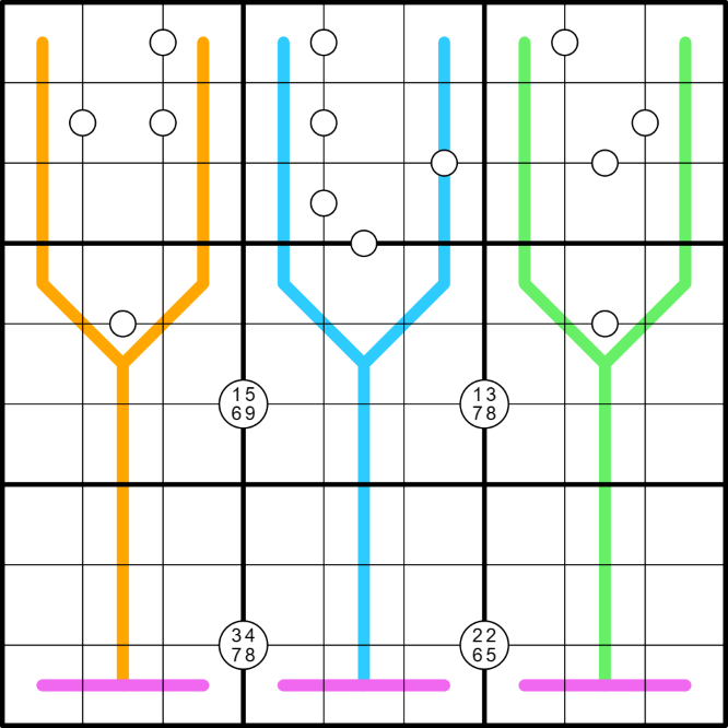 Very nice puzzle, the constraints worked really well together, I really enjoyed how the renbans worked. Didn't use the region sum lines at all though, but it's never a bad thing to give solvers multiple possible solve paths :)