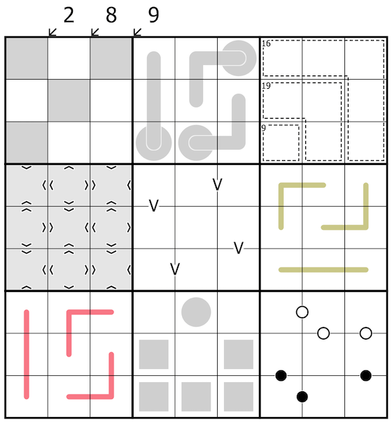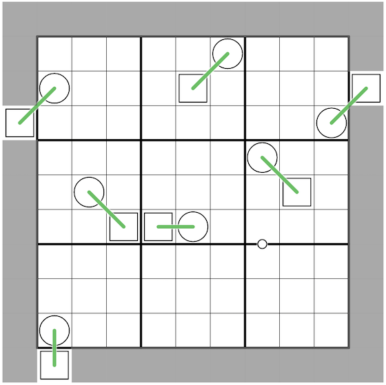 Behaving Loop 3x3 boxes Polarity Line Kropki Dots