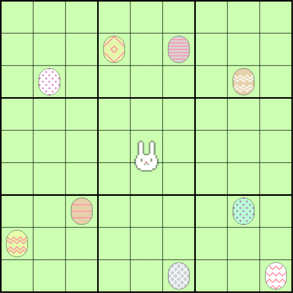 Easter Bunny: Digits in cells connected by an Easter Bunny are in a 1:2 ratio.
