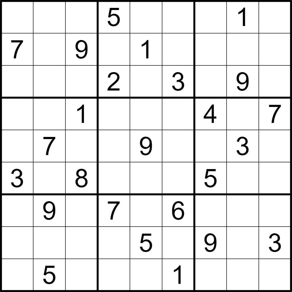 Fill every empty cell in the grid with a digit from 1-9 in a certain order, such that no digit repeats in a row, column or box.