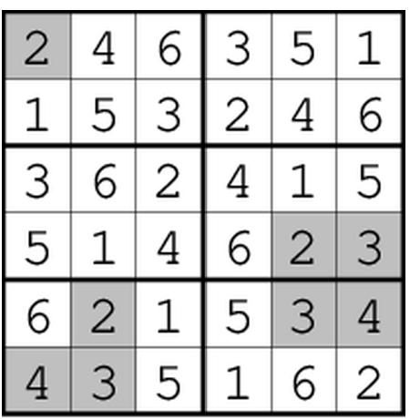 Solution code: Numbers of the first column followed by row 4.