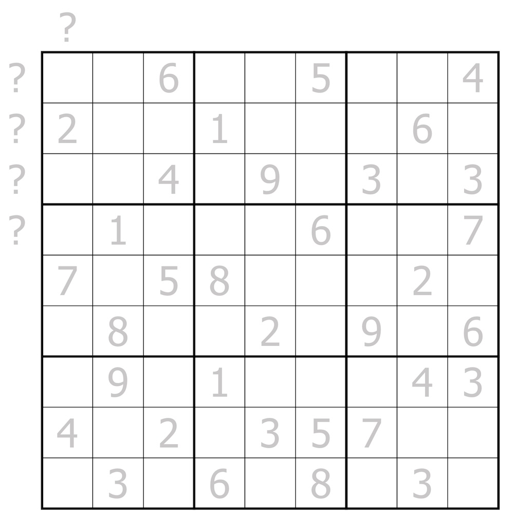 - [Sudoku] Then normal sudoku rules apply - so every row, column and 3x3 box will need the digits placed from 1-9. Cells shaded blue are given digits. The digits in cells shaded gray cannot be correct digits in the final sudoku.