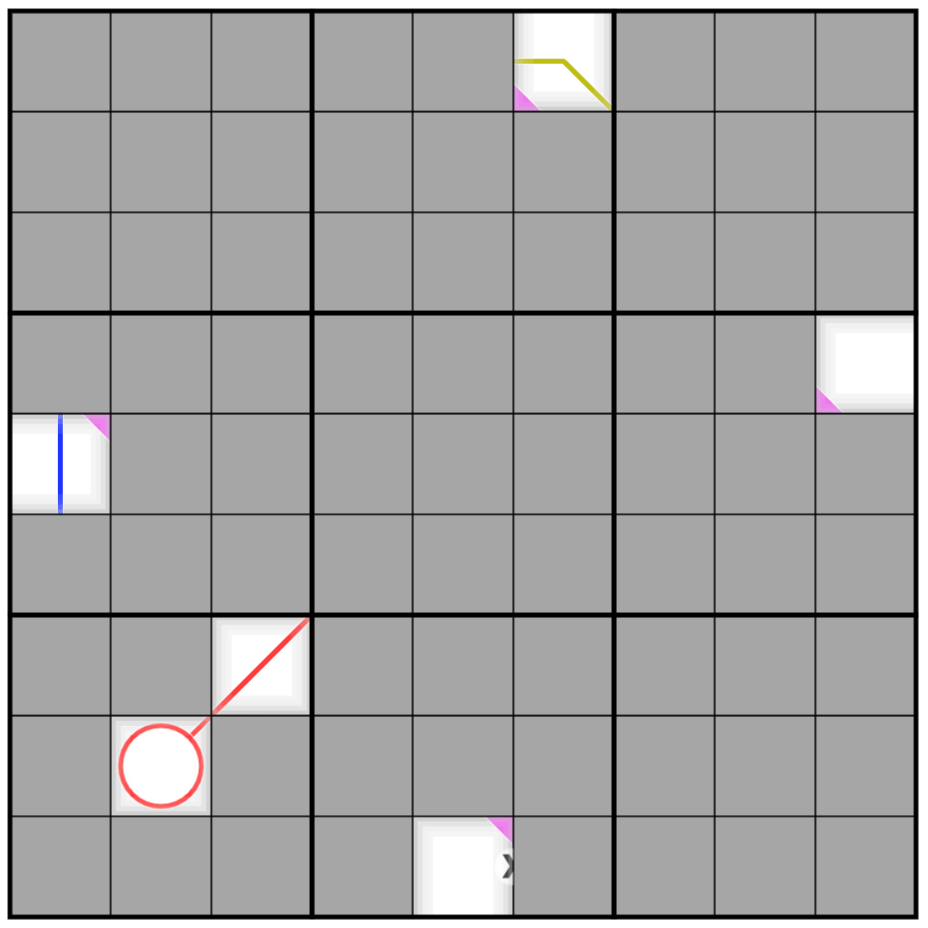 Renban loops contain a set of consecutive values in any order. Each loop is a different color of thick line, and does not cross or intersect itself.