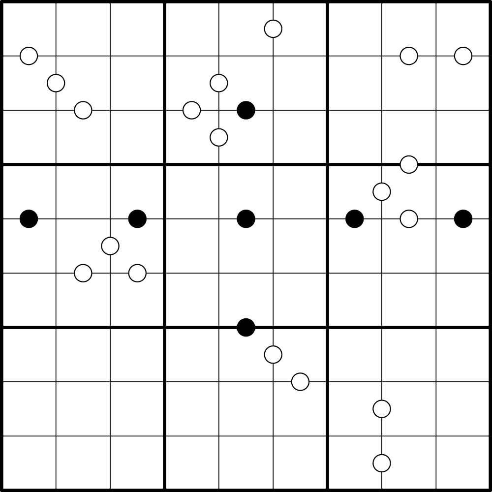- Digits joined by a black dot are in a 1:2 ratio, and digits joined by a white dot are consecutive. Not all possible dots are given.