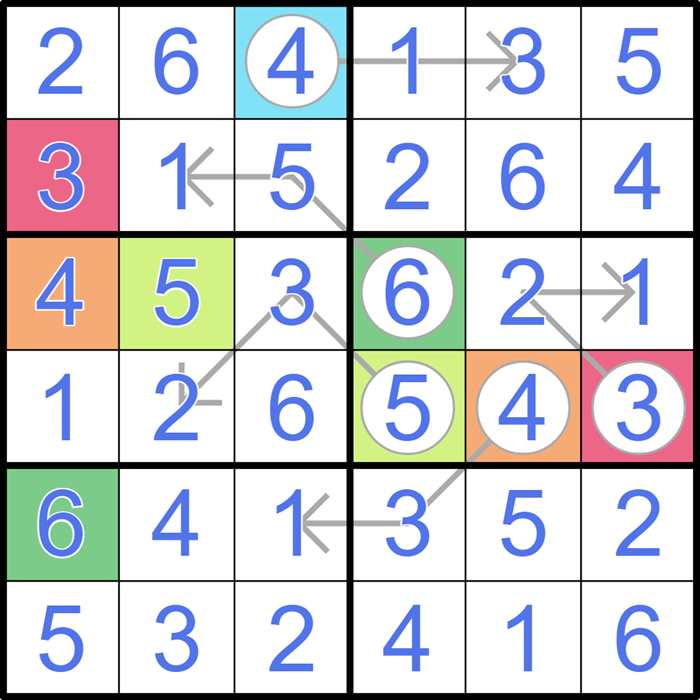 6x6 Example: This has the same rules as the 9x9 version, minus the negative constraint. I.E. It is not necessary that all digits which can be indexed, must be indexed. Play 6x6 version on Sudokupad / See completed 6x6 grid
