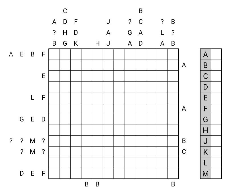 • Each letter represents a different number. A "?" may represent any number, including two-digit numbers.