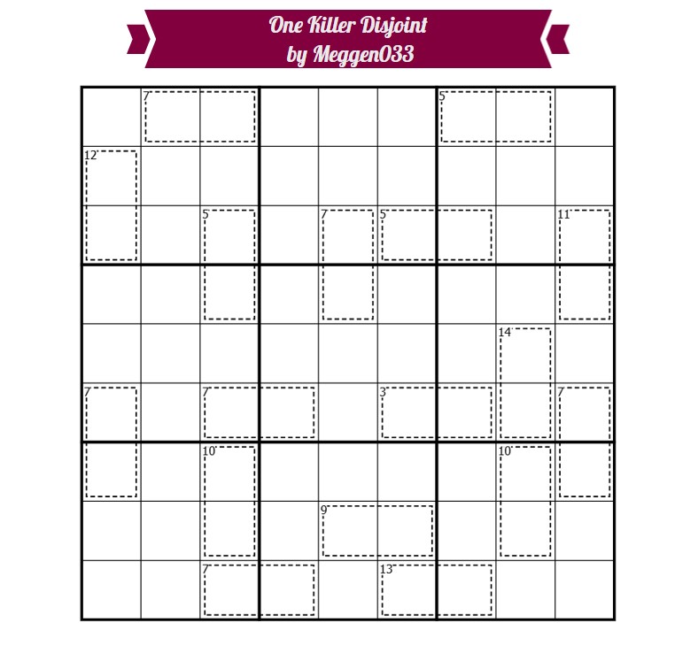 • Digits in a cage do not repeat and sum to the clue in the top left.