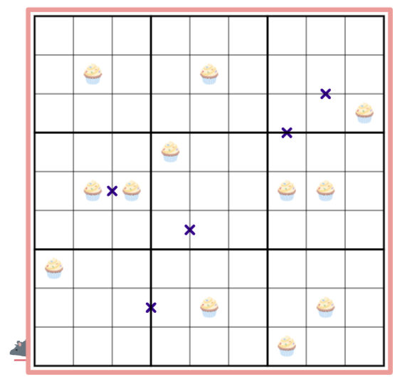 - Each region contains exactly one cupcake. This cupcake indicates that region's size. Digits may not repeat in regions.