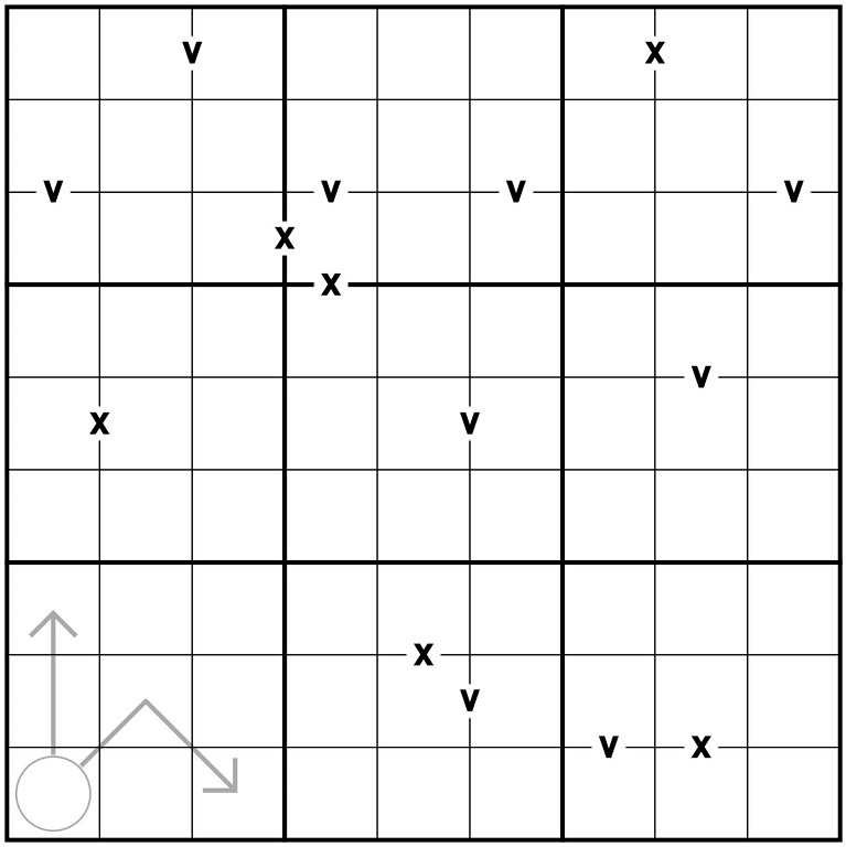 Digits joined by an X sum to 10. Digits joined by a V sum to 5. All Xs and Vs are given.