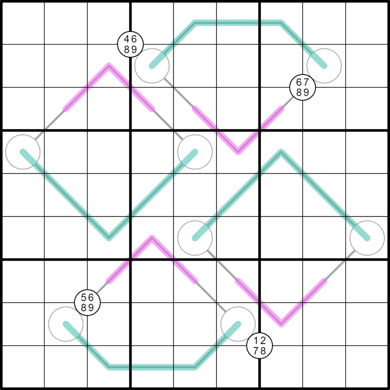 - Renban: Digits on a magenta line form a set of consecutive digits in any order.