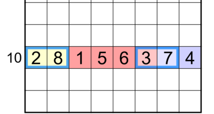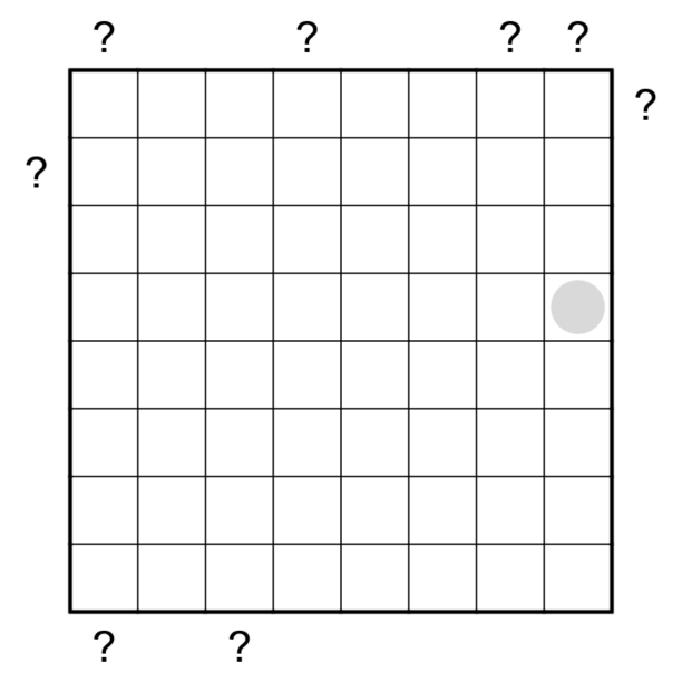 2) The sum of two cells that share the last region border seen from that clue's direction in its respective row/column (of course, not counting the 8x8 grid perimeter).