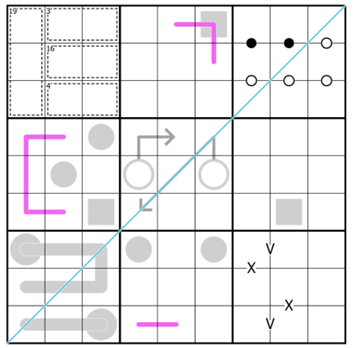 Box 2,4,6,8: Hallways - Odd – Even: Digits in a greyed circle are odd, and digits in a greyed square are even. For this mystery 0 is considered even. Renban: Digits along a purple line are consecutive in some order.