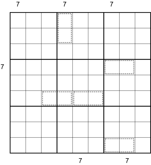 Skyscrapers: Each cell represents a ‘skyscraper’ whose height is the digit in that cell. Taller skyscrapers obscure the view of smaller ones. Clues outside the grid tell how many skyscrapers are visible looking across the row or column from the direction of the clue.