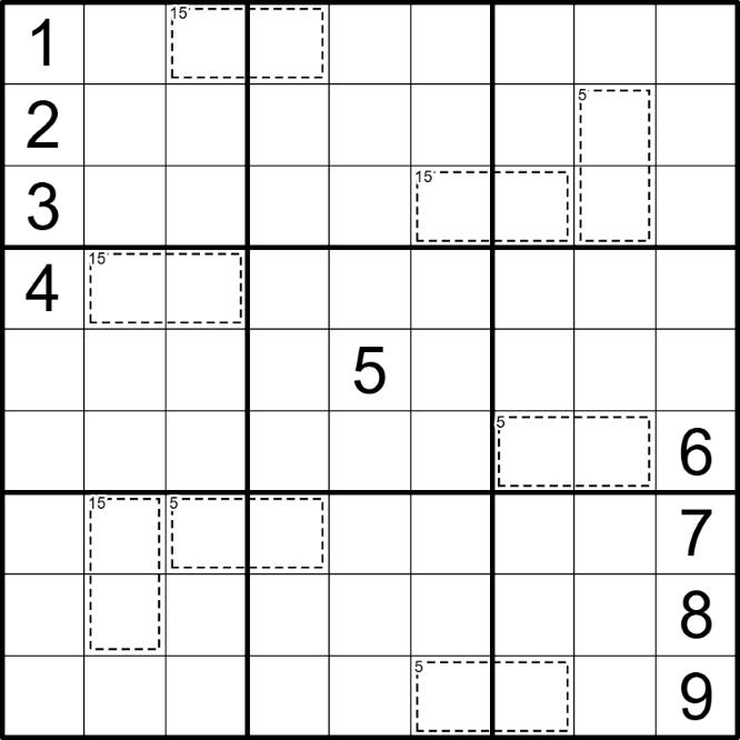 • Knightmare rules apply - digits a 'knights move' apart can not sum to 5 or 15