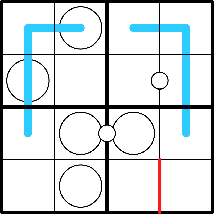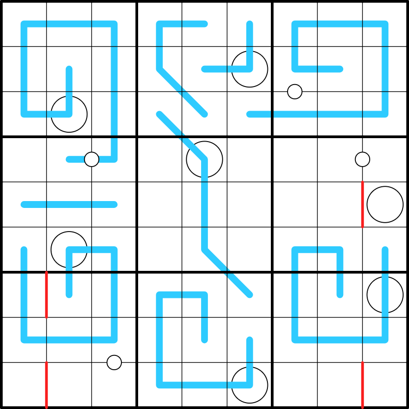 P.S. I would suggest changing "and/or" in the regional sums rules to just "and". Both crossing the loop and crossing a sudoku box splits the sums, "and" would be correct. My first thought was that "or" means there are sums that go across either the loop or the boxes in some places, but that would make it unsolvable. If "or" is there to mean "or both"... I think it's self evident.
