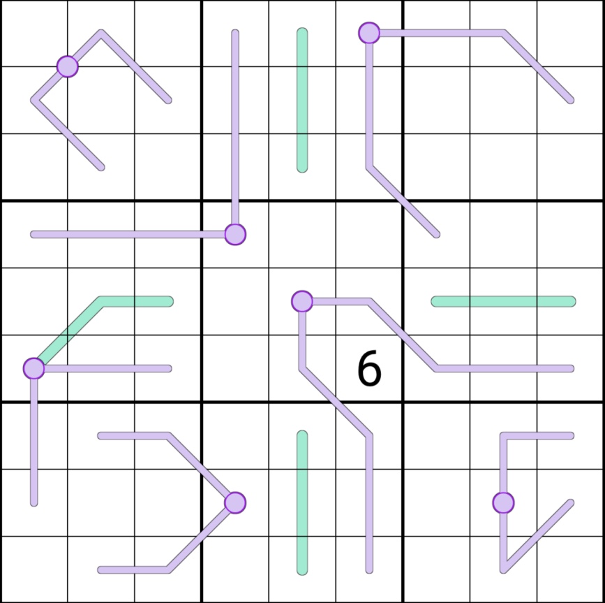 Every set of three sequential cells on a teal modular line must contain one digit from (1,4,7), one digit from (2,5,8), and one digits from (3,6,9).