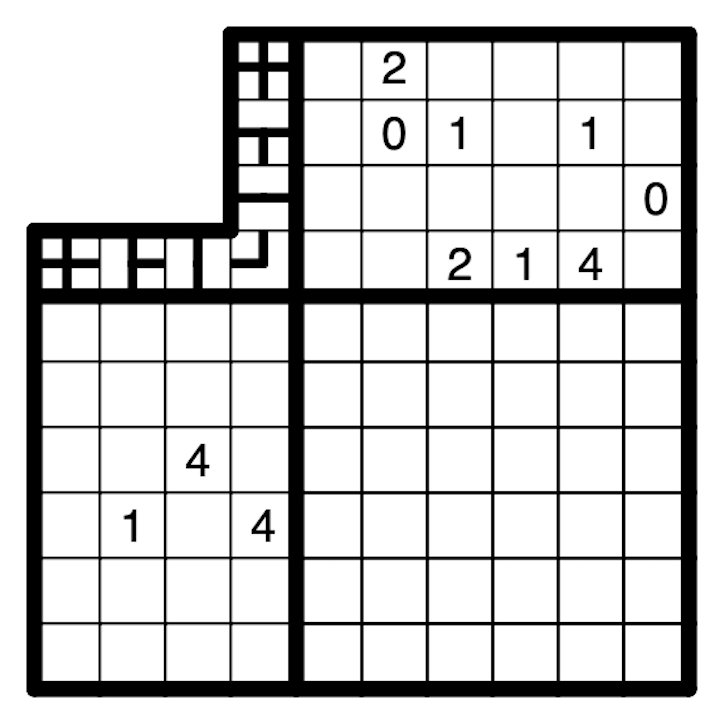 A clue outside the grid indicates how many times the corresponding line shape (i.e. a cross, branch, straight line, or turn) appears in the corresponding row or column, irrespective of the line shape's rotation.