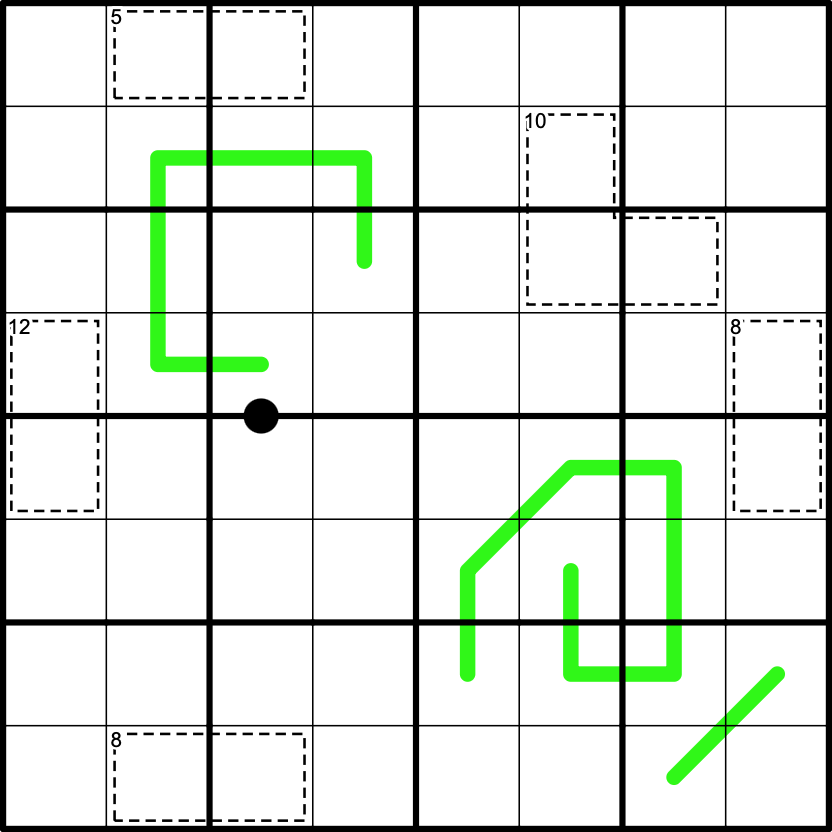 WHISPERS: Consecutive digits on a green line must be at least 4 apart from each other.