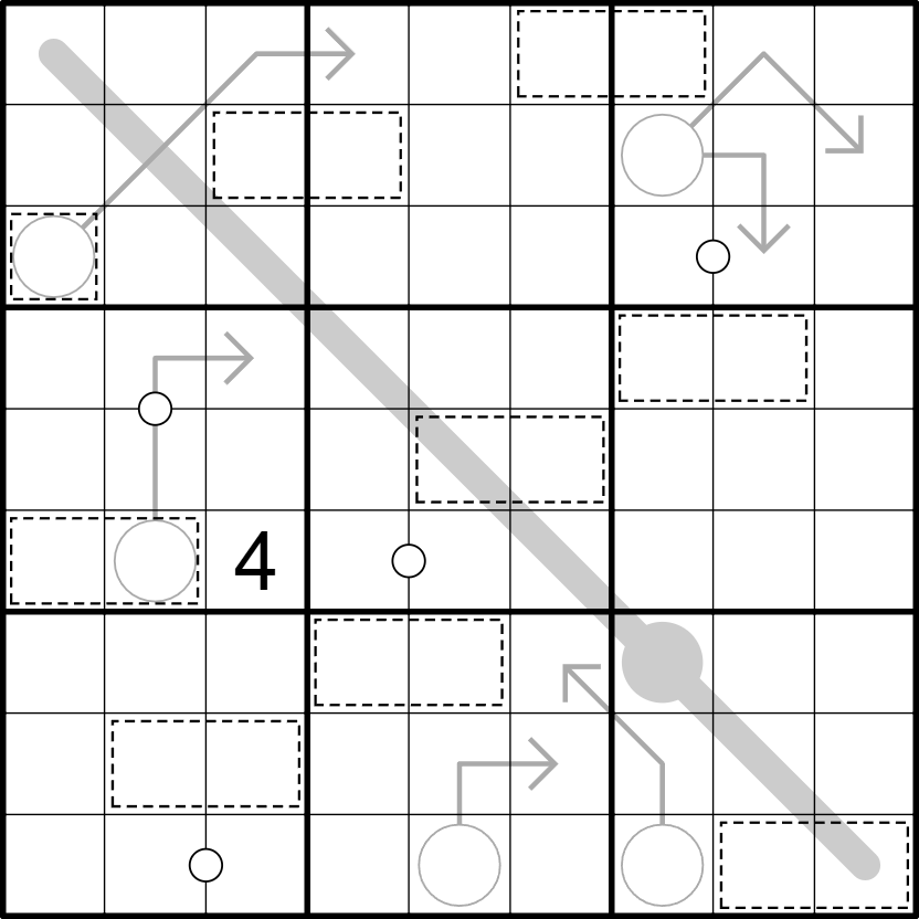 Kropki Dots: Digits separated by a white dot are consecutive.