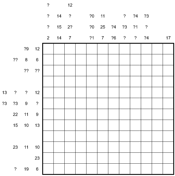 Solution code: Row 3, using pentomino letters for shaded cells and digits for unshaded cells (12 characters)