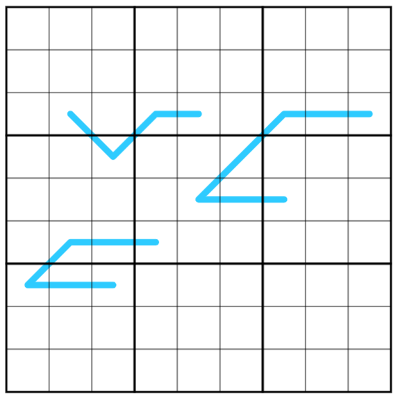Normal sudoku rules apply. Each box is identical to exactly two other boxes i.e. on same positions are same digits on those boxes (which boxes are identical must be determined by the solver). Box borders divide the blue line into segments with the same sum.