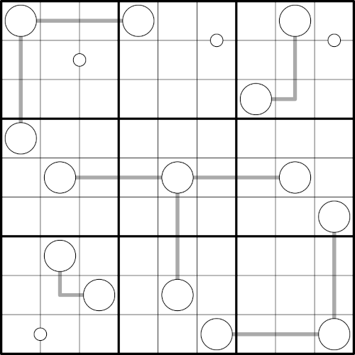 - Digits connected by a white dot are consecutive. Not all dots are given.