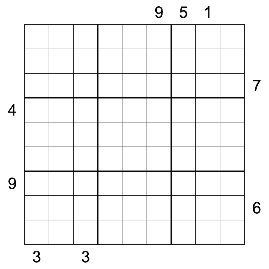 The value of each cell in the grid represents the height of a skyscraper. Clues outside the grid indicate the number of skyscrapers visible in that row or column, looking in that direction. Taller skyscrapers conceal smaller ones, and also those of the same height.